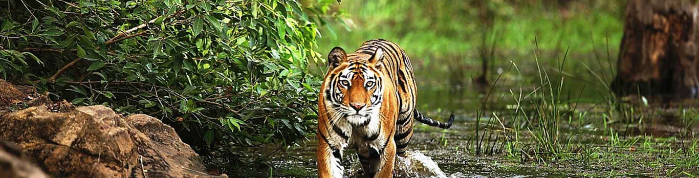 Mammals: Tiger leopard, elephant, chital, sambar, hog deer, barking deer, wild boar, langur, Wild pig, rhesus monkey, sambar and jackal.